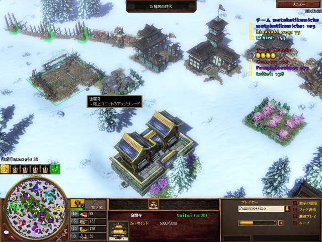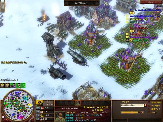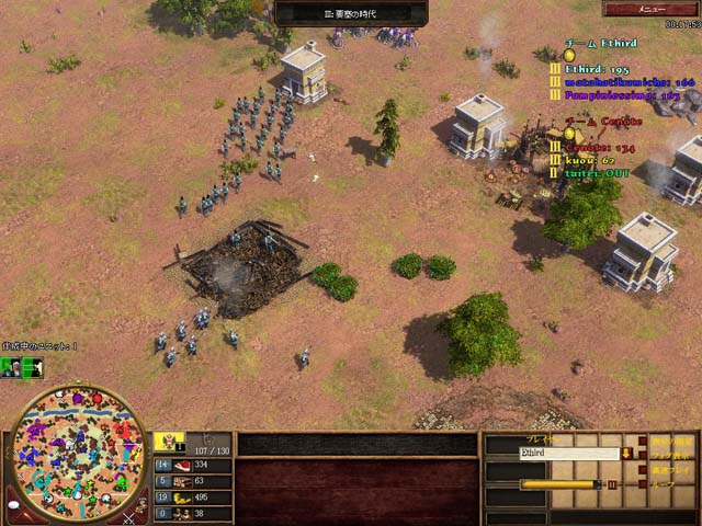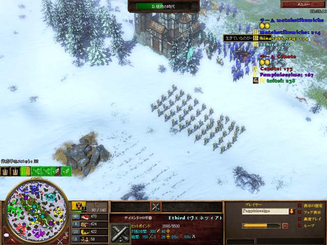 Pampi本陣では中華が「面倒だ」とばかりに歩兵突撃を行っている!もはや資源的な心配はない、ただ小屋を全力で回しながら突撃するのみである。ジンカイセンジュツ!中華の真骨頂である。