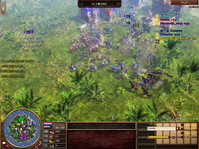 taiteiの軍はPampi本陣に駐留しようとしている。しかし残念!前線はそこではないのだ。敵は真っ正面から攻めてきている!なんたる不覚!「taitei=サン、戻ってください!」「むう、しかしこの本陣を守らねば」「うちはいいからCenote守って!」
