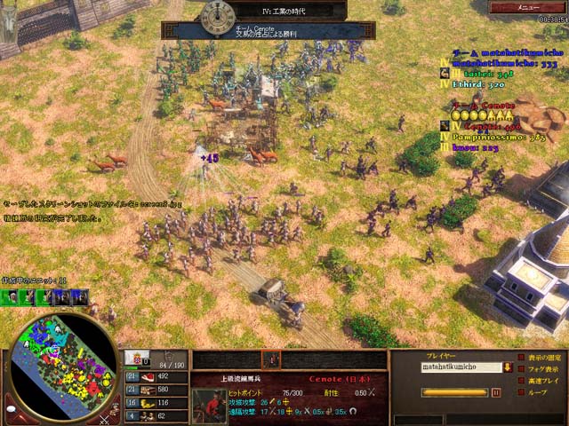 チームmatahati側、あたりかたがよくありません。マセにドラが、流鏑馬に大陸騎兵が当たってしまっています。